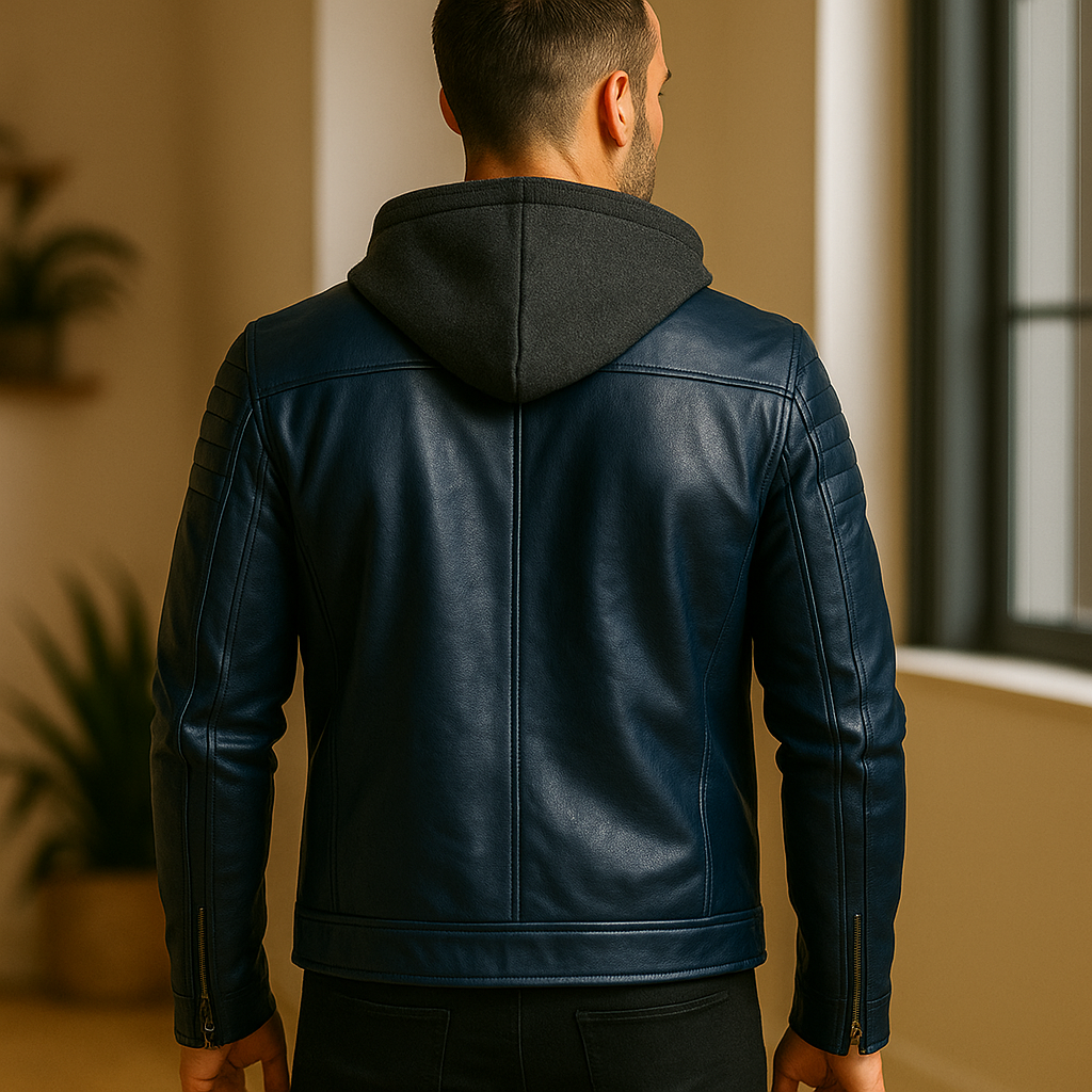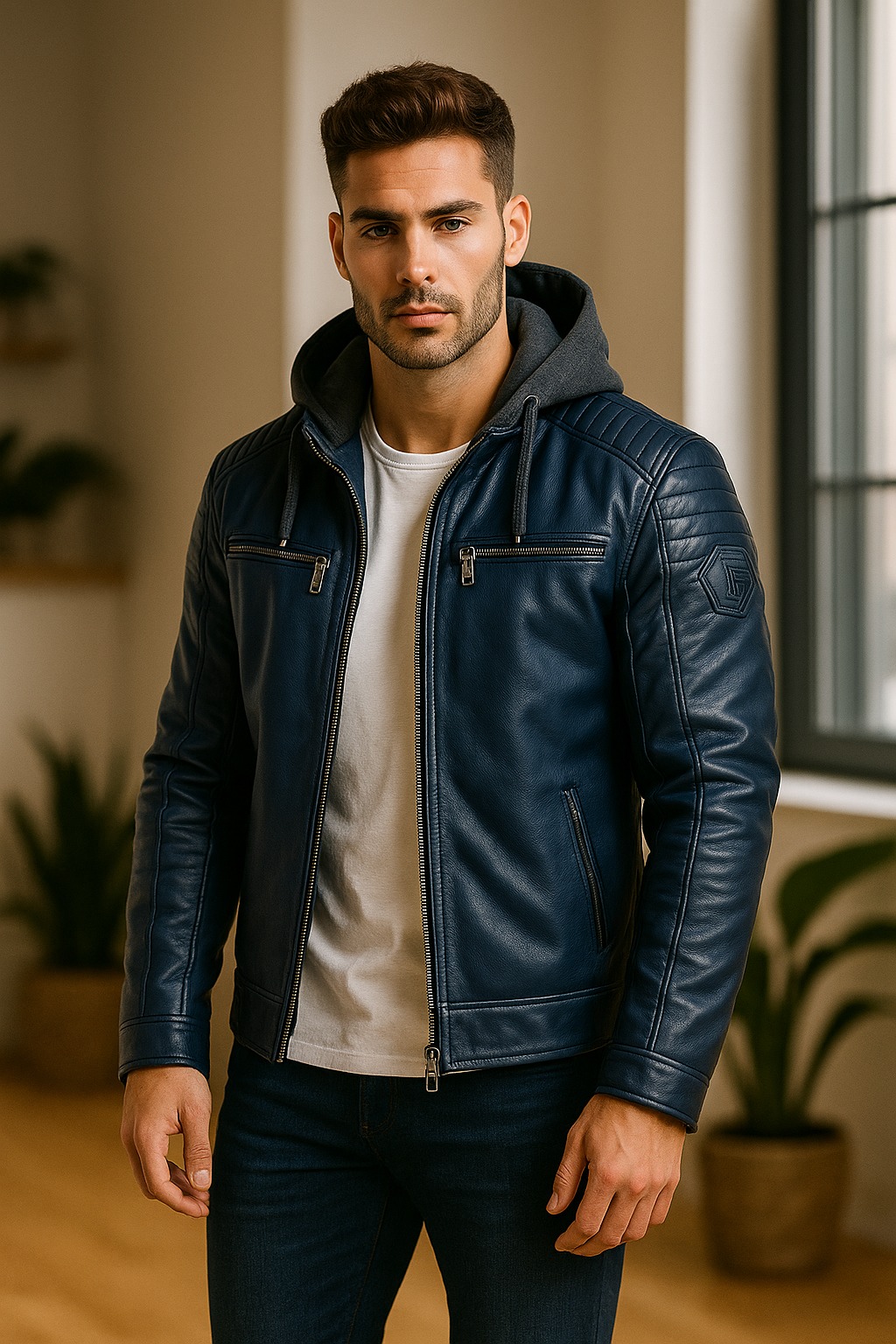 Chaqueta de cuero azul sobre medida – Estilo urbano con carácter único