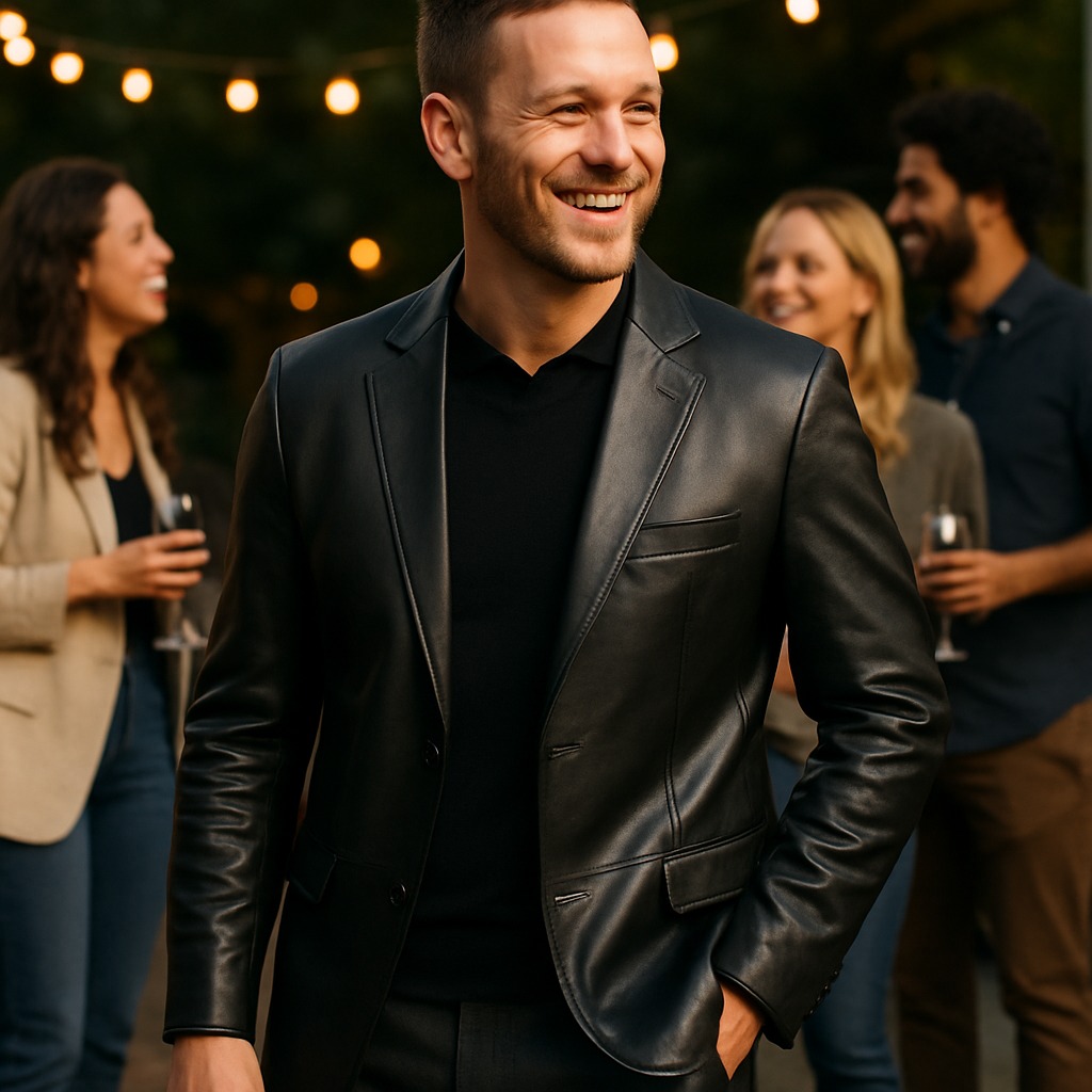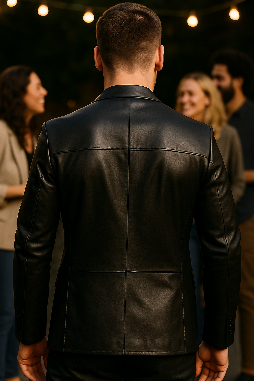 Este blazer de cuero negro hecho a tu medida fusiona la elegancia del corte sastre con la fuerza del cuero premium, logrando una prenda que habla por ti antes de que digas una palabra.